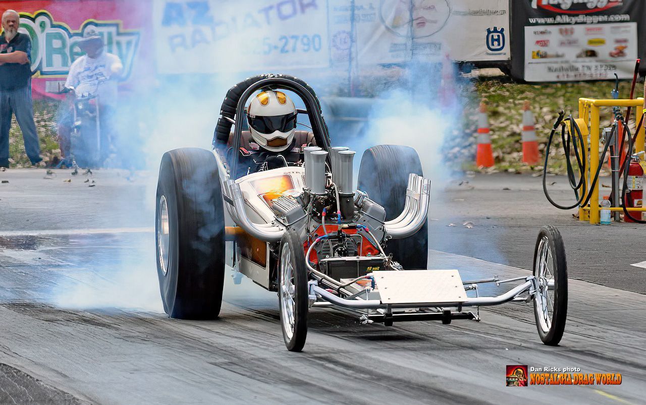 Dragsters in the 1950’s and in the 1960’s were truly unique, as in, each one was somewhat different from all the others. We use to have front engine dragsters, rear engine dragsters, dual engine dragsters, three engine dragsters and even four engine dragsters. Some of the dragsters had four-wheel drive. Some of the multi-engine dragsters had engines mounted side-by-side, some mounted in-line. There were even some that were mounted sideways. Some had full bodies, some had partial bodies and some no bodies at all. As far as engines, we had dragsters with Ford engines, Chevy engines, Pontiac engines, Chrysler engines, Buick, DeSoto, Cadillac, Packard, Lincoln, GMC, Oldsmobile, you name it. I don’t think you could name an automotive engine that wasn’t mounted in a dragster at one time or the other. We even had dragsters with aircraft engines. In the early 1950’s when drag racing was still something new, the media called the dragsters “rail jobs”. This was because the early dragsters were not much more than a car with an engine mounted in frame rails. Get a car, remove the body, fenders pretty much everything else, and you had a “rail job”. Sometimes it’s hard to remember that before we had 18-wheeler “transporters” with tool cabinets that cost more than a house, we had single axle open trailers and a tool box we could carry with one hand. Our “transporter” was usually a trailer hitch on the of the family station wagon or pick-up truck. It was a different time, but it was our roots and it is our heritage.