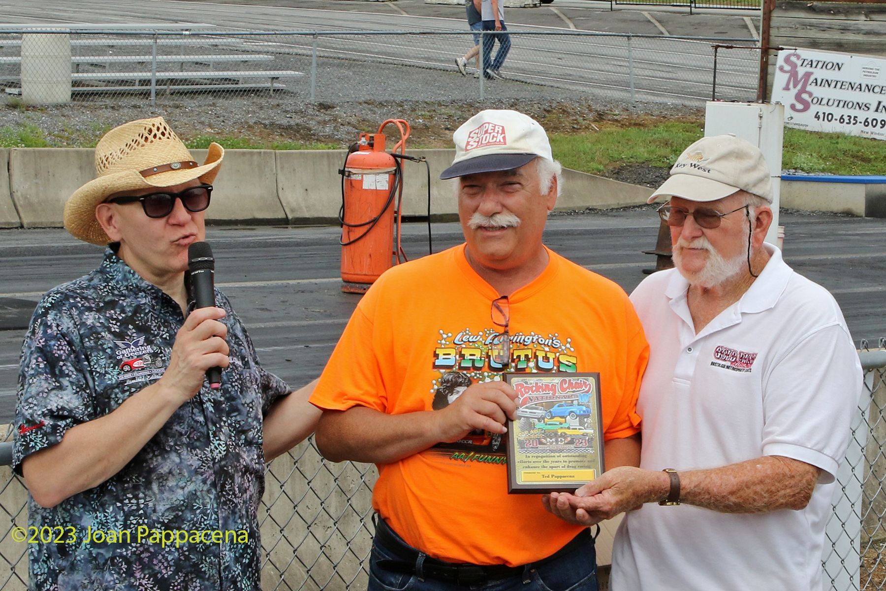 Up early Saturday morning at to be at the track by 9:30 A M. That’s when the ceremony would start. Among the honorees were Jack Redd, Steve Bell, Todd Dziadosz , Vern Abernathy, Sam Auxier, Jr, Steve Lesuer, Tom Mc Rea,, and Phil Hutchens to name a few. Plaques were given to each of us and we were interviewed by Bill “Drag List” Pratt, Hayne and Gary. When it was over I found the time to try out my new camera. It has a vehicle tracking feature and I was eager to see how it performed. It did very well, but truthfully, it was just too hot to stand out there and shoot anything for an extended period so it was back to the tent for more bench racing before we left for the day. And a great day it was!