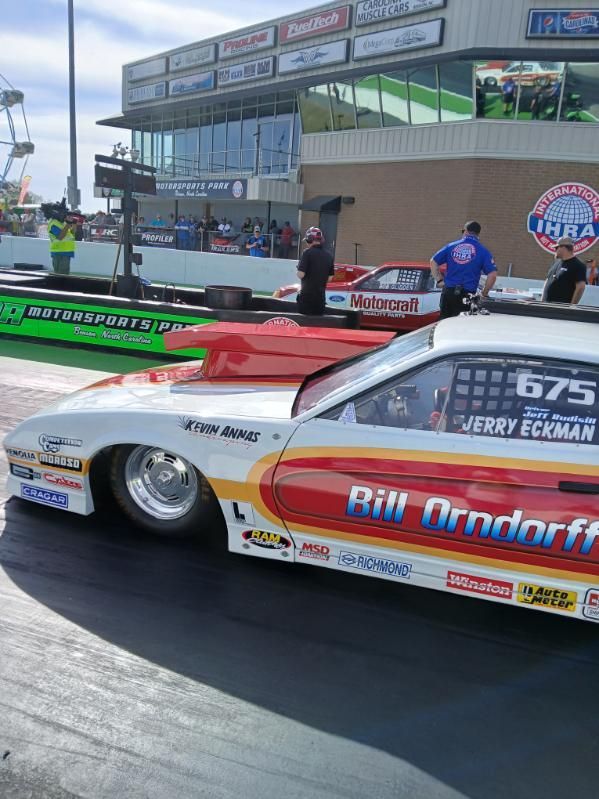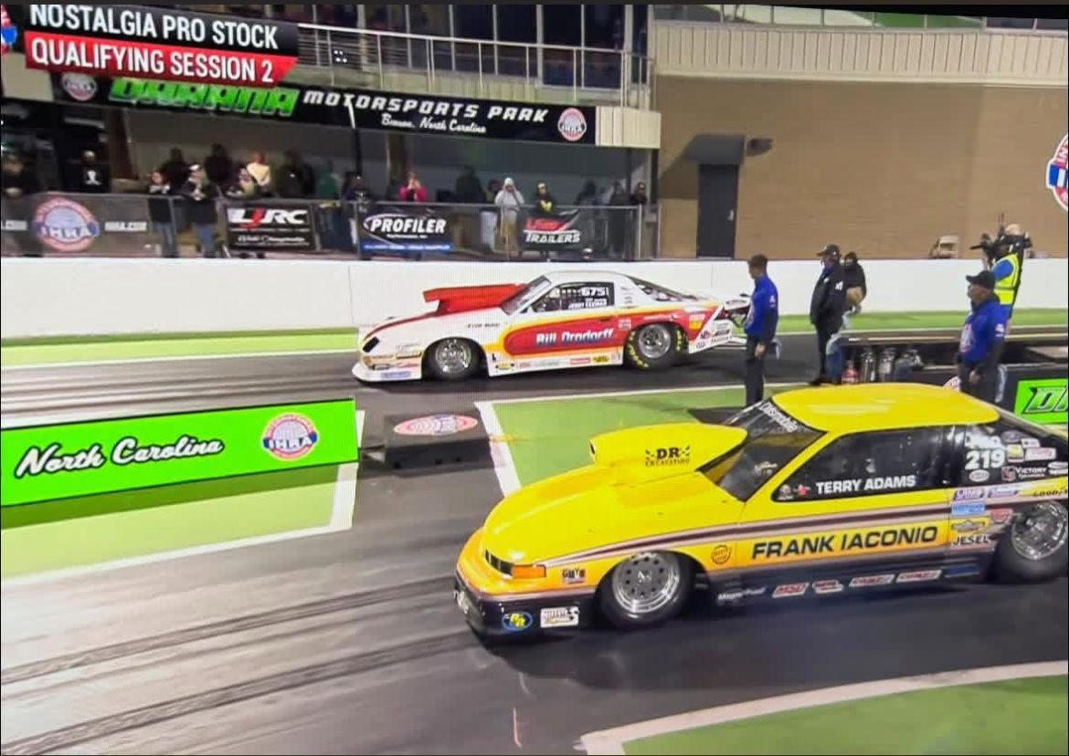 Teams from both the Southeast Nostalgia Pro Stock Association and the Midwest Pro Stock Association once again joined forces to put on a spectacular show. Half-track burnouts, dry hops and side by side gear banging action keep the crowd on their feet. Popular names from the past like Bob Glidden, Orndorff and Eckman, Frank laconio and Rick Jones were all represented over the packed event. The guys made 4 runs which were televised on IHRA TV.