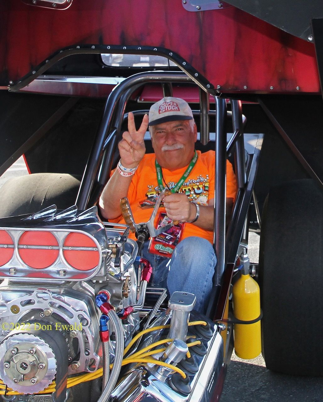 We proceeded back to Irwindale to continue our great time at NR 5. I got to see more cackling, racing, and meet more people. By the time we got back, we missed the big fire up because we had to find an In-N-Out to get lunch and a few t-shirts (thanks again Siri). When we got back everyone was loading up the cars for the various trips home. My base of operations was Ross Howard’s trailer where I was able to put all my camera gear and swag. Ross, as I mentioned before owns the Custom Body Challenger. He was getting ready to load the car back in the trailer so I went to gather my stuff. Ross then asked me if I had a good day. My response was “You asked me that 3 years ago at the Amelia Island Concours d’ Elegance (very long story) and do you remember what I said?” He did. He asked his helper for the event Larry “The Okie Smoker” Brown to raise the body because a “little kid wanted to sit in it”.